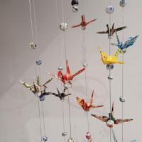 Les mobiles sont fait de papier traditionneln washi. Certains sont fabriqués avec des perles en bois, d'autres avec des perles en céramique.